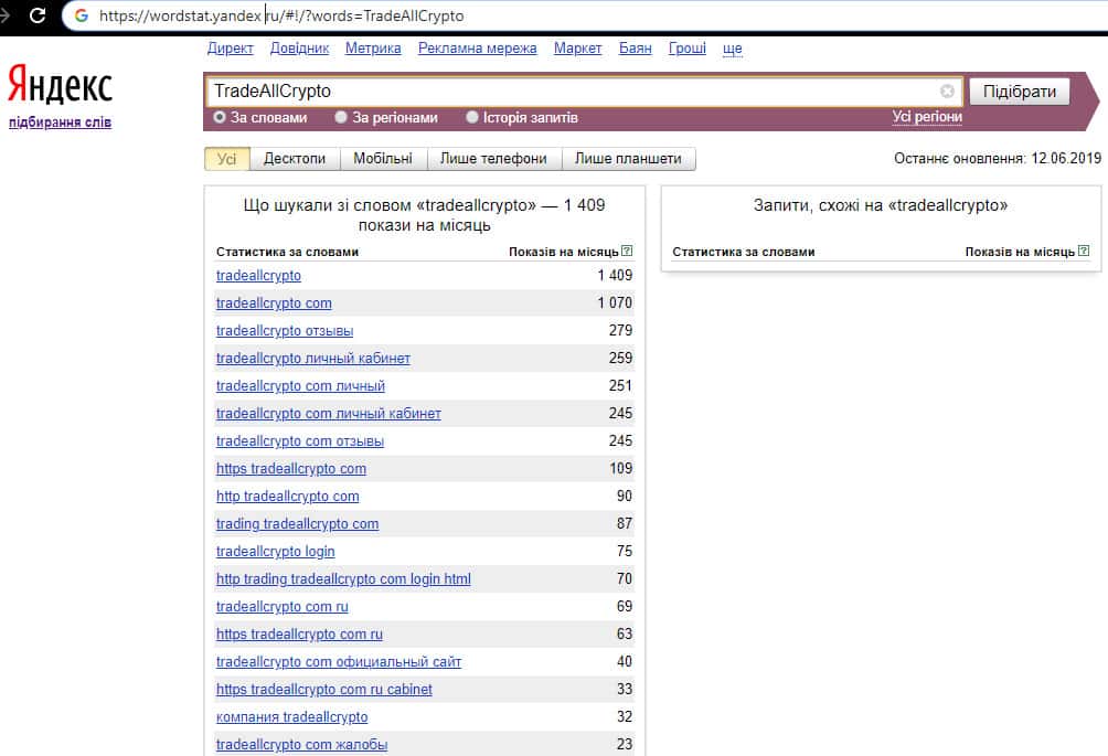 Мошенники из Макси Маркетс принялись за охват всего рынка прибыли в Интернете. Они объединили мошеннические проекты на рынке форекс, на бинарных опционах, на рынке и майнинге криптовалют. Торговля криптовалютными деривативами достаточно прибыльная, и этот сектор перекрывает в торгово-мошенническом объединении контора TradeAllCrypto.