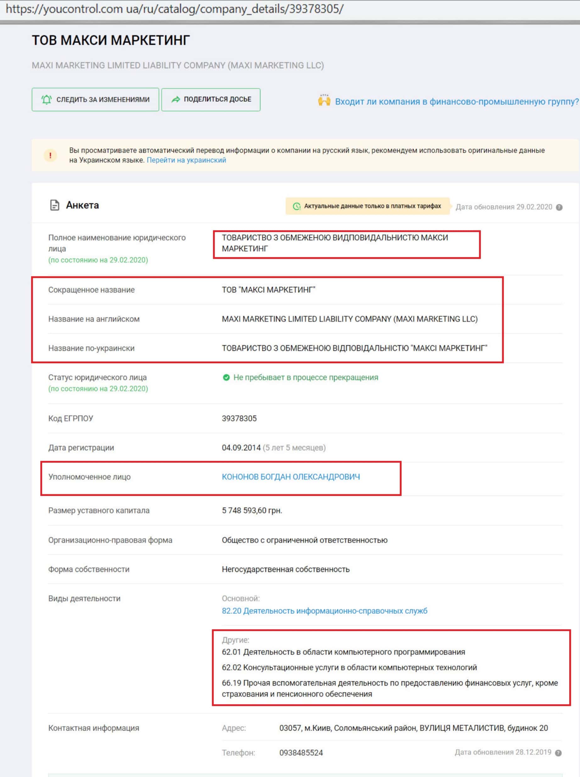 За каждой группировкой обычно стоит какая-то компания, которая выступает как владельцем, так и основателем. В данном случае контрой MaxiGroups (Maxi Markets) владеет некая компания ТОВ "МАКСИ МАРКЕТИНГ" (MAXI MARKETING LIMITED LIABILITY COMPANY, либо сокращено MAXI MARKETING LLC с регистрацией в Украине.