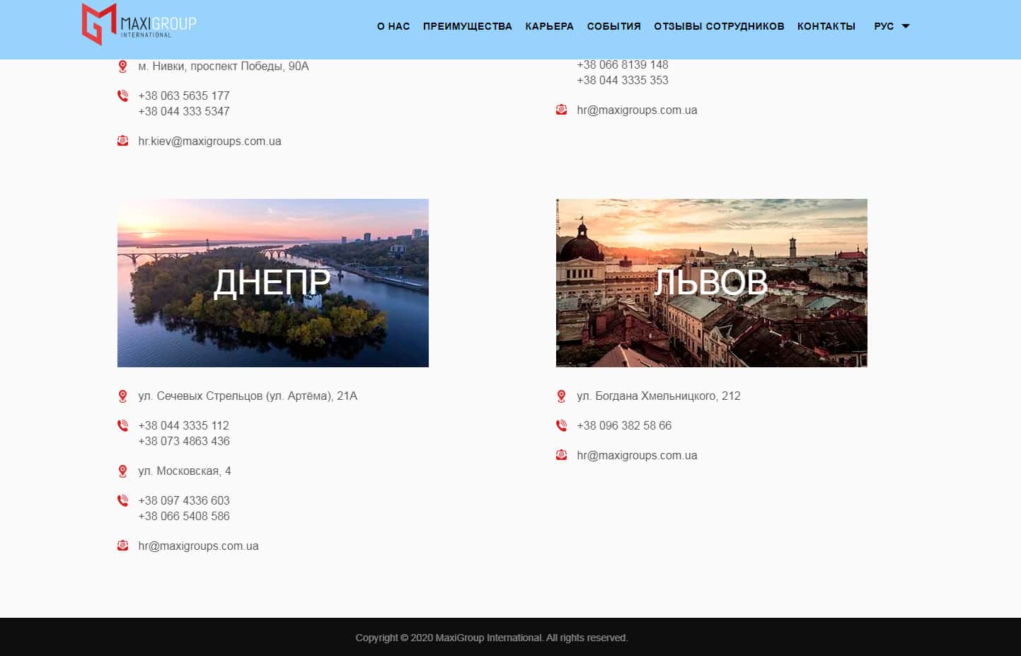 - ул. Московская, 4, тел. +380974336603 и +380665408586 и email hr@maxigroups com ua