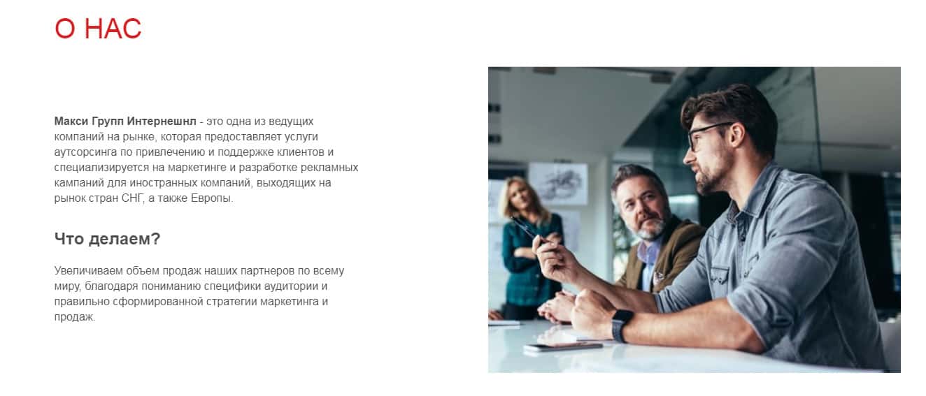О лицензии аферисты Макси Группс (Макси Маркетс) не упоминают, что рассчитано на расположение наивных пользователей, которые не будут вдаваться в детали мошеннической деятельности. Шулера Макси Группс (Макси Маркетс) ничем не подкрепляют свои данные, кроме раздела о нас, что вы можете увидеть на изображении ниже.