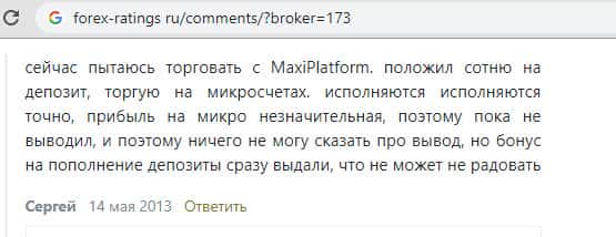 Противоположность реальных и рекламных отзывов о Макси Платформ на их портале