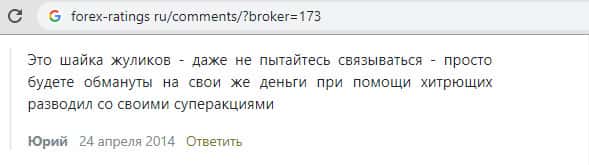 "Не заливайте, не самые низкие у них спреды. Некоторые брокеры дают ощутимо ниже. Но если не пипсовать, а в интрадей работать или среднесрок, то вполне сносные спреды. В принципе, чтобы поддерживать хороший сервис, компания должна иметь не копеечный заработок, потому не жалко потратиться и на не самый мелкий спред." - вот что говорит пользователь Юрий о этих мошенниках.