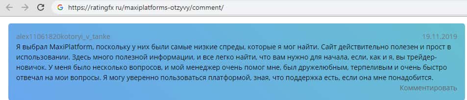 alex11061820kotoryi_v_tanke рассказывает о преимуществах Maxi Platform на сайте ratingfx
