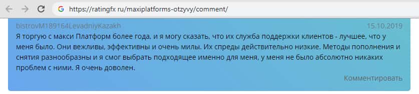 "Я торгую с макси Платформ более года, и я могу сказать, что их служба поддержки клиентов - лучшее, что у меня было. Они вежливы, эффективны и очень милы. Их спреды действительно низкие." - пользователь bistrovM189164LevadniyKazakh пытается заманить нас в эту ловушку мошенников под названием Макси Платформ, которая несёт в себе только один лишь негатив.