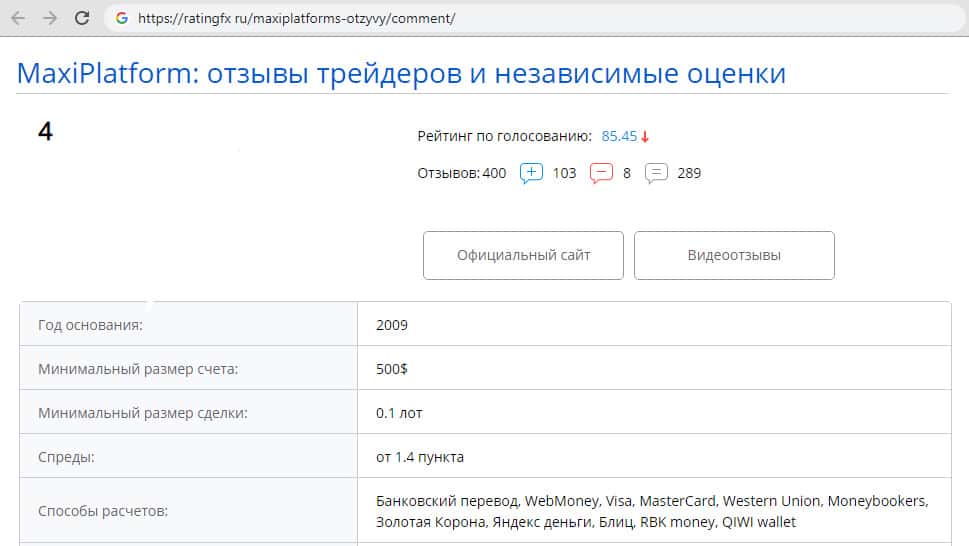- Противоположность реальных и рекламных отзывов о Макси Платформ на их портале