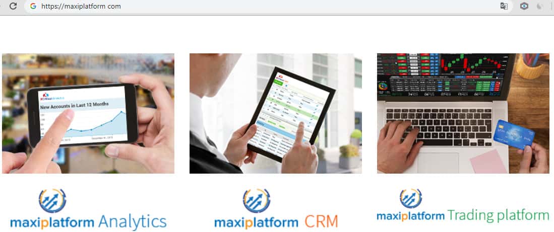 Далее создатели Макси платформ приоткрывают занавес своего предложения на рынок финансовой торговли. Они разбивают свое предложение как бы на три составляющие: MaxiPlatform Analytics (отчет о данных из разных источников), CRM и собственно Торговую платформу MaxiPlatform (сетевое ПО для торговли на финансовых рынках форекс).