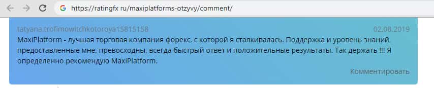 - Ещё один лестный отзыв в сторону Макси Платформ от tatyana.trofimowitchkotoroya15815158