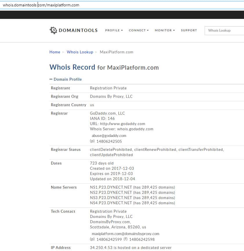Примечательна, при этом информация о дате последней редакции данных "Условий" - 23 мая 2016 года, при том, что сам портал Макси Платформ был зарегистрирован только 3 декабря 2017 года. Будем надеяться, что регистрация данного ресурса не будет продлена буквально через неделю и одним мошенническим проектом станет меньше.