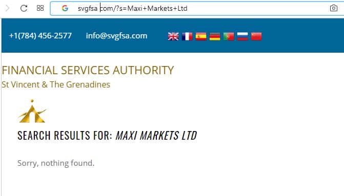 - Отсутствие Макси Маркетс и Макси Платформс в реестре лицензированных фирм Сент-Винсент и Гренадин