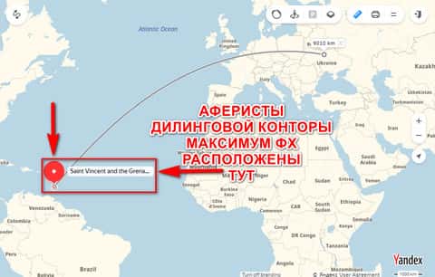 Как уже было сказано, аферисты Максимум ФХ используют различные схемы ухода от ответственности в том числе и оффшорную прописку. Помимо того, что они не платят налоги, да еще и нет смысла судиться с подобной кухней, которая находится за кучу километров от вас. Адрес: Cedar Hill Crest, Villa, KingstownSt.Vincent and the Grenadines, West Indies.
