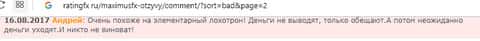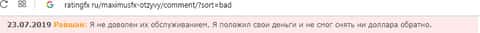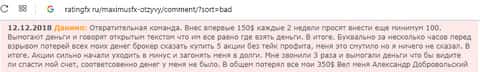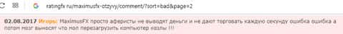Подробная жалоба на Максимус Фх - клиент утратил почти 5 000 $