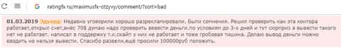 Бывший клиент Максимум ФХ не рекомендует связываться с ними