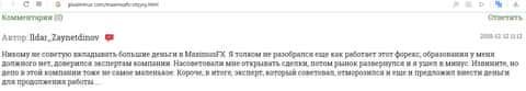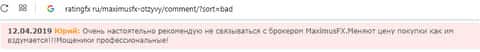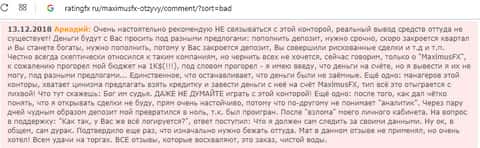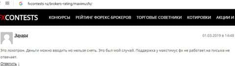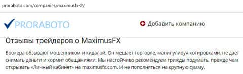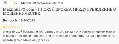 - Бывший клиент Максимум ФХ не рекомендует связываться с ними