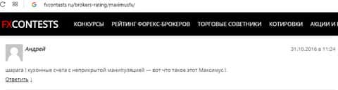 - Трейдер жалуется, что в кухне MaximusFX манипулируют с котировками
