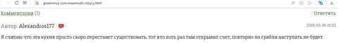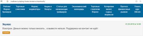 Правдивый вывод сделал один интернет-ресурс, который занимается разоблачением таких контор как Максимум ФХ. По их мнению, кухня мешает торговле, манипулируя котировками, а также не дает снимать деньги и кормит обещаниями. Ресурс предупреждает не связываться с лохотроном MaximusFX.