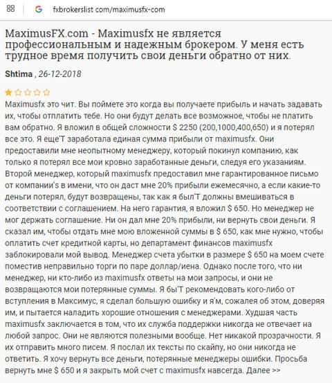 - Отзыв о наглом кидалове со стороны аферистов Максимум ФХ