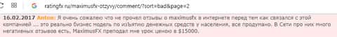 Еще один негативный отзыв о веб-шараги Максимум ФХ