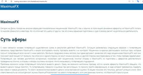 Интернет-портал trading-association com выставил на доску позора контору MaximusFX, которые попали туда по жалобе одного обманутого инвестора. Мошенники отличаются от остальных тем, что они имеют достаточно серьезную подготовку и раскинули свою деятельность на достаточно долгий период.