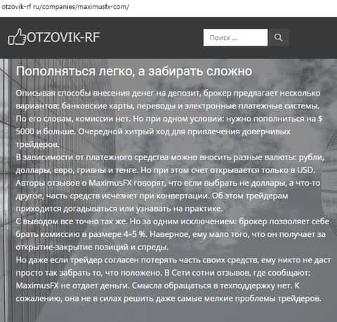 Контора MaximusFX попала в обзор авторитетного интернет-ресурса
