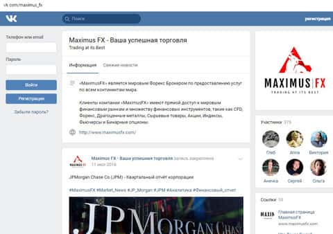 Брокерская контора Максимум ФХ также проводит лохотронизацию людей в социальных сетях и ищет там различных потенциальных лохов. Это все довольно понятно, когда знаешь, что данные мошенники зарабатывают в основном за счет опрокинутых жертв. А теперь по порядку предлагаем ознакомится со ссылками и скриншотами на социальные сети: