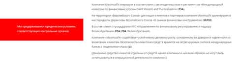 Касательно регуляции деятельности мошеннической организации MaximusFX, здесь все довольно печально, так как аферисты используют информацию, приписывая себе регулятора FSA, хотя никаких документов в подтверждение данной информации нет. В этом и есть одно из разоблачений мошенников Максимум ФХ.