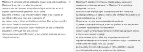 Политика конфиденциальности интернет-жулья Максимум ФХ