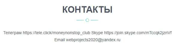 - На сайте проекта Money NonStop Club практически отсутствует контактная информация