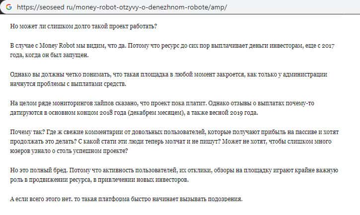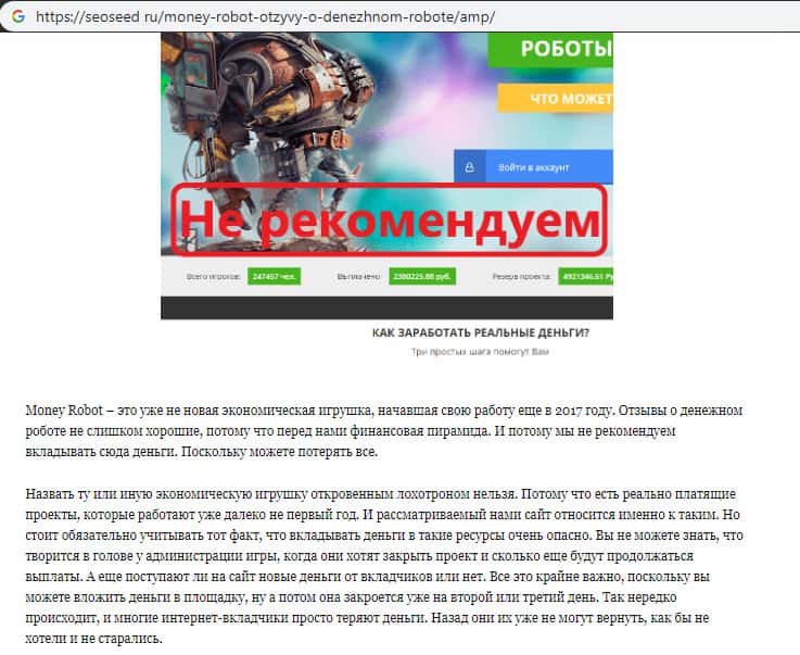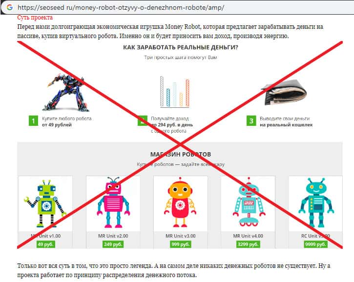 seoseed ru - детальный обзор главного сайта финансовой пирамиды Money-Robot Pro