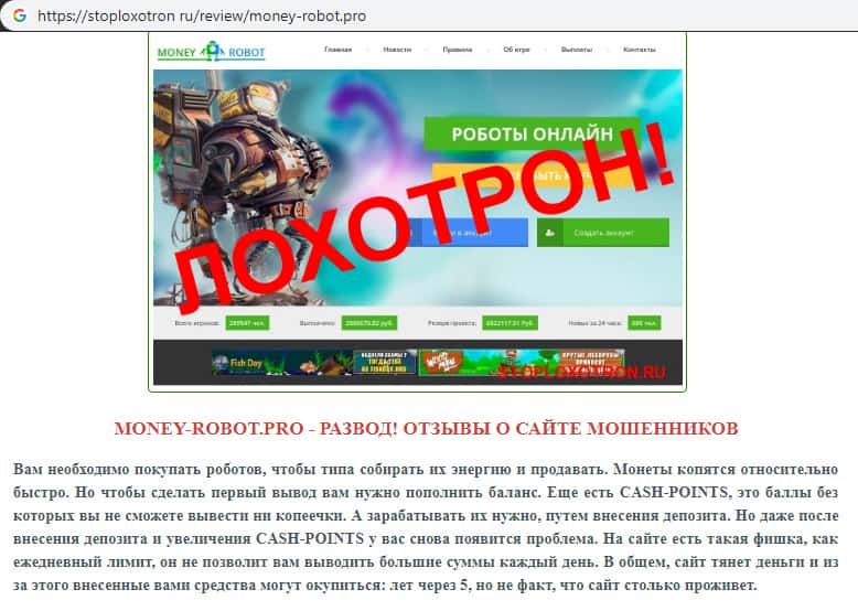stoploxotron ru - обзор на деятельность мошенников Мани Робот