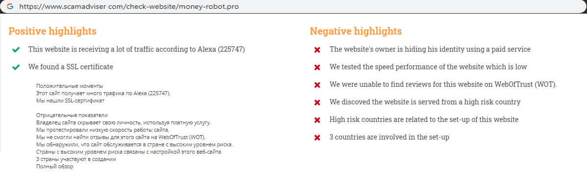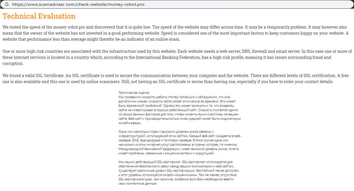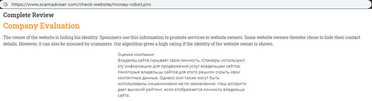 scamadviser com - полный обзор деятельности аферистов Money-Robot Pro