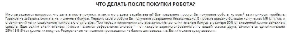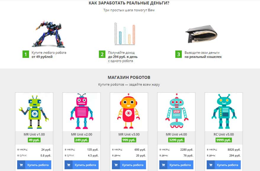 Вся история с роботами является полной аферой, ведь на самом деле никаких роботов в основе игры нет и подавно: это финансовая пирамида, работающая по принципу получения новичками денег более бывалых игроков и действующая на разделении денежных потоков. Часть вашего дохода уходит на «прибыль», а часть заботливо идёт на покупку новых роботов.