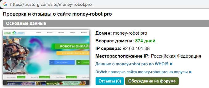 Краткий разбор доверия к домену главного сайта аферистов Money-Robot Pro