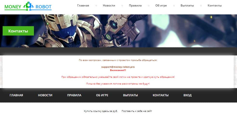 - Контактная информация шарлатанов Money-Robot Pro довольно ограниченная
