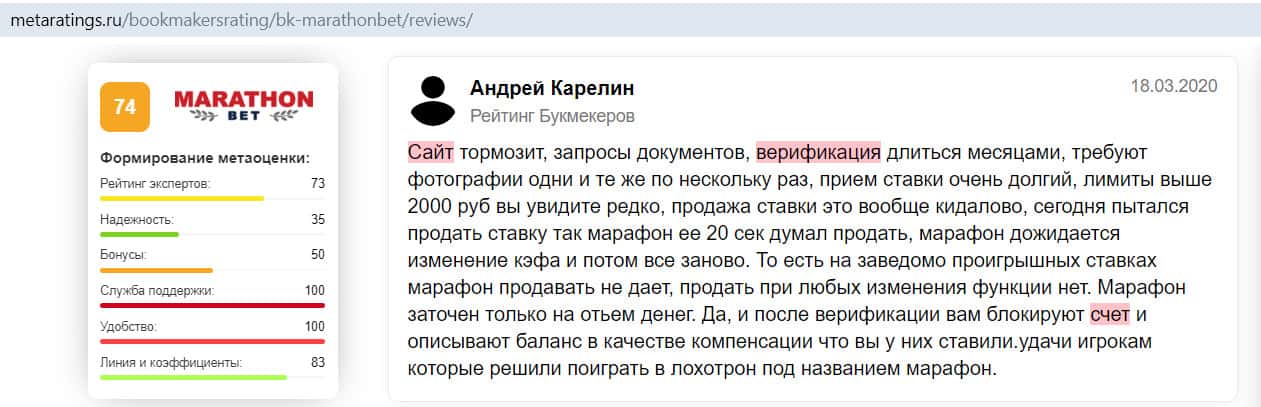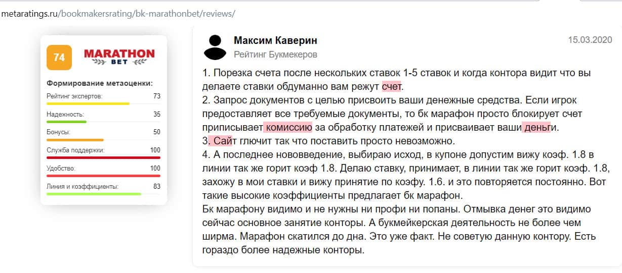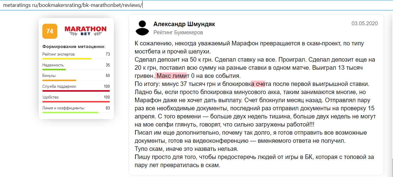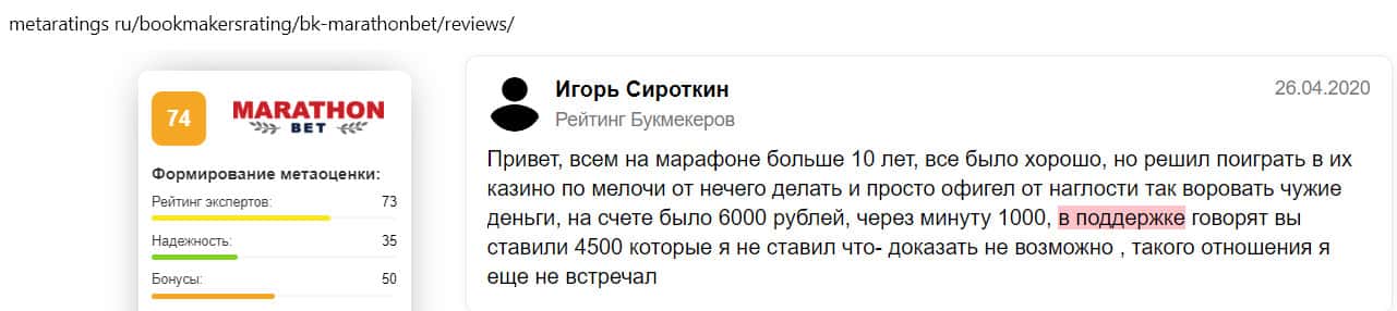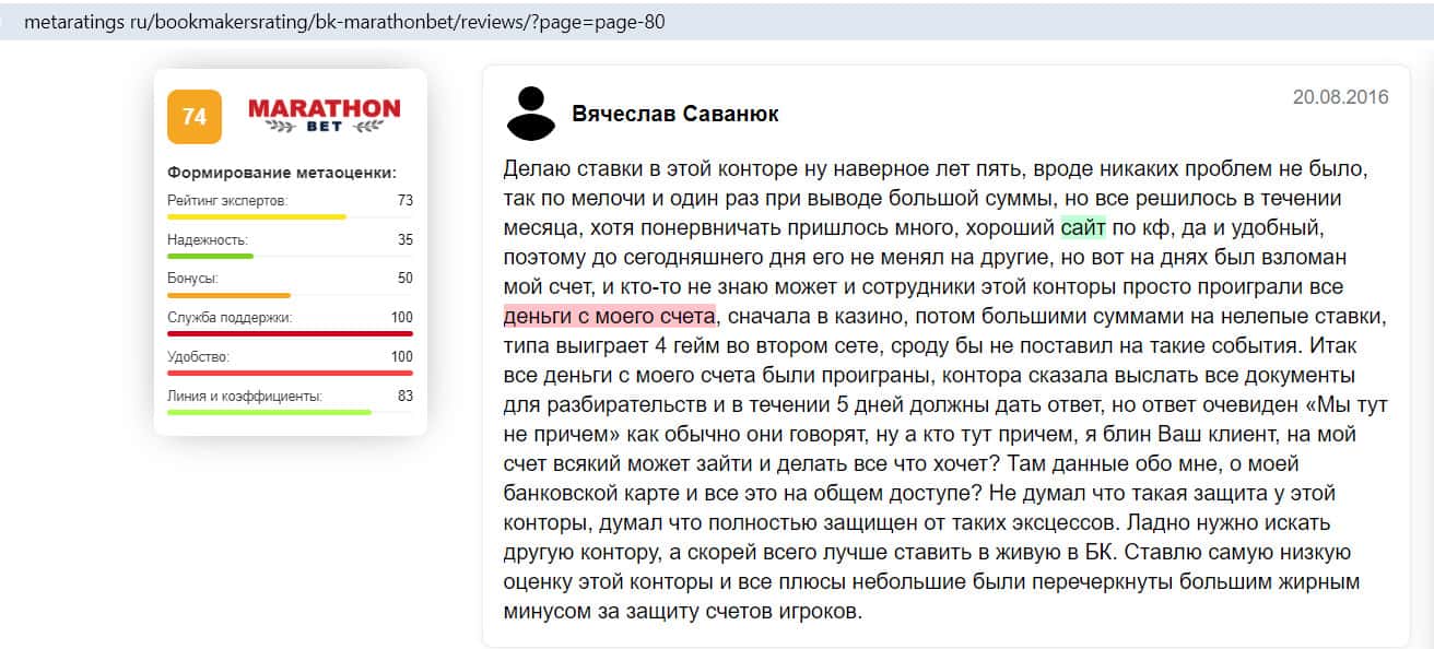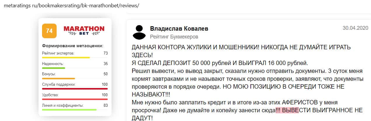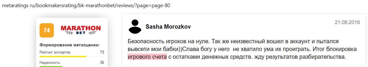 - Отзыв на сайте metaratings ru: некогда уважаемый Марафон Бет превратился в скам-проект