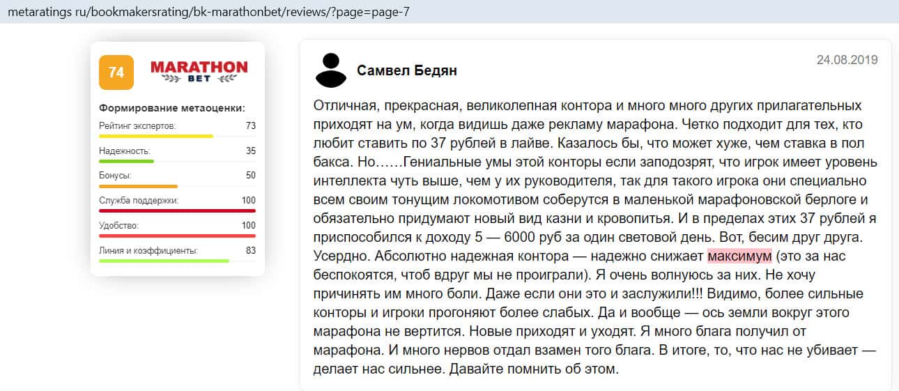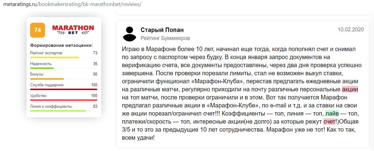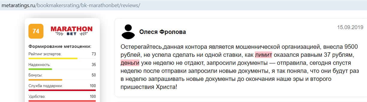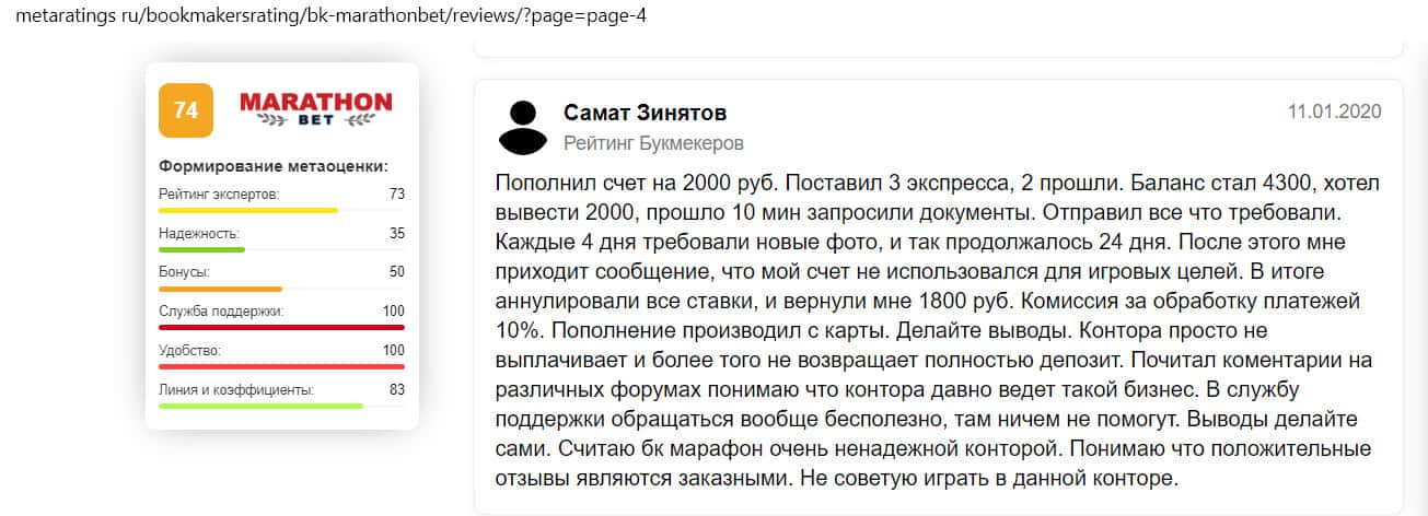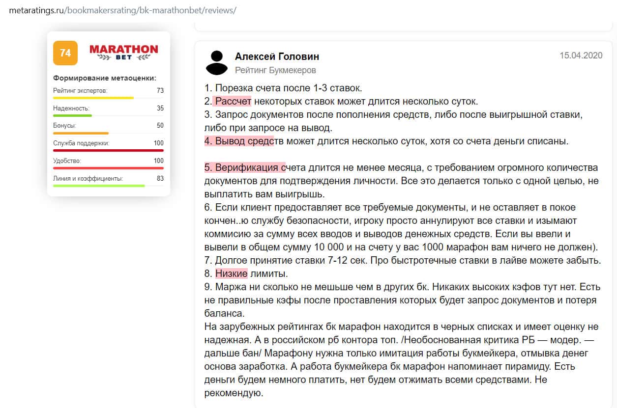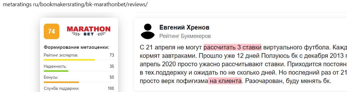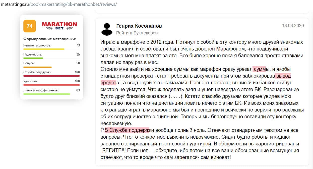 - Отзыв на сайте metaratings ru: некогда уважаемый Марафон Бет превратился в скам-проект