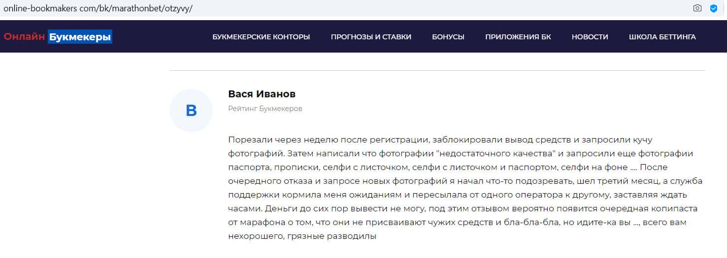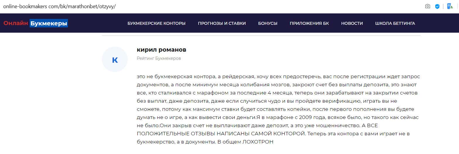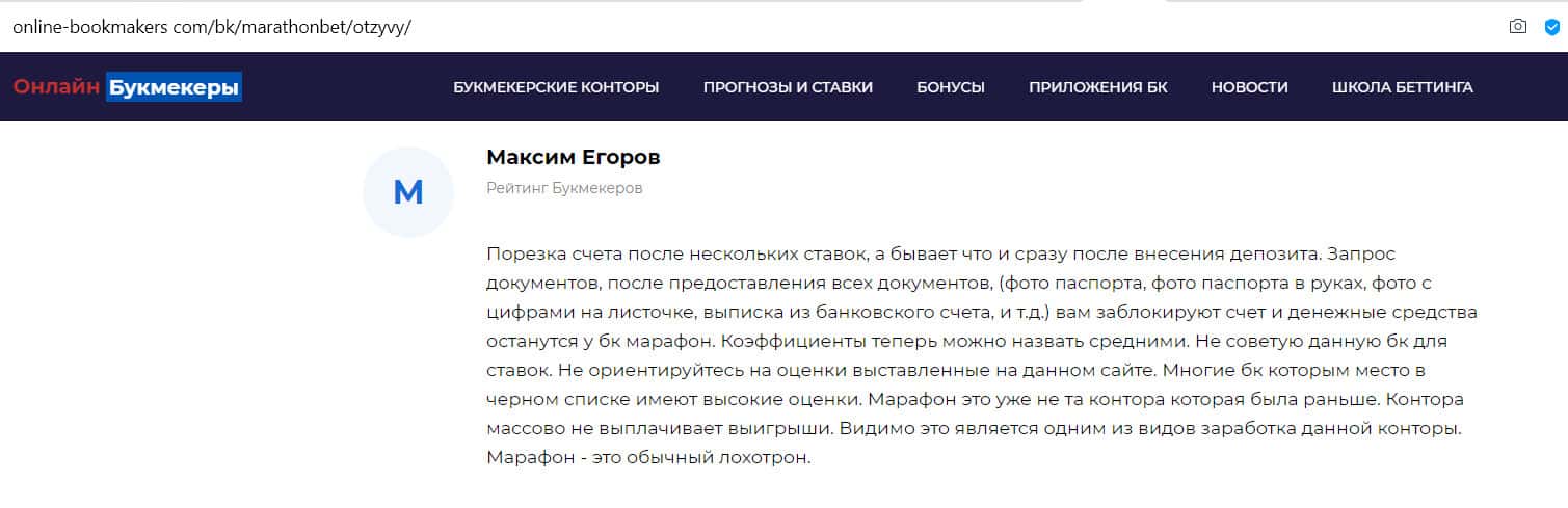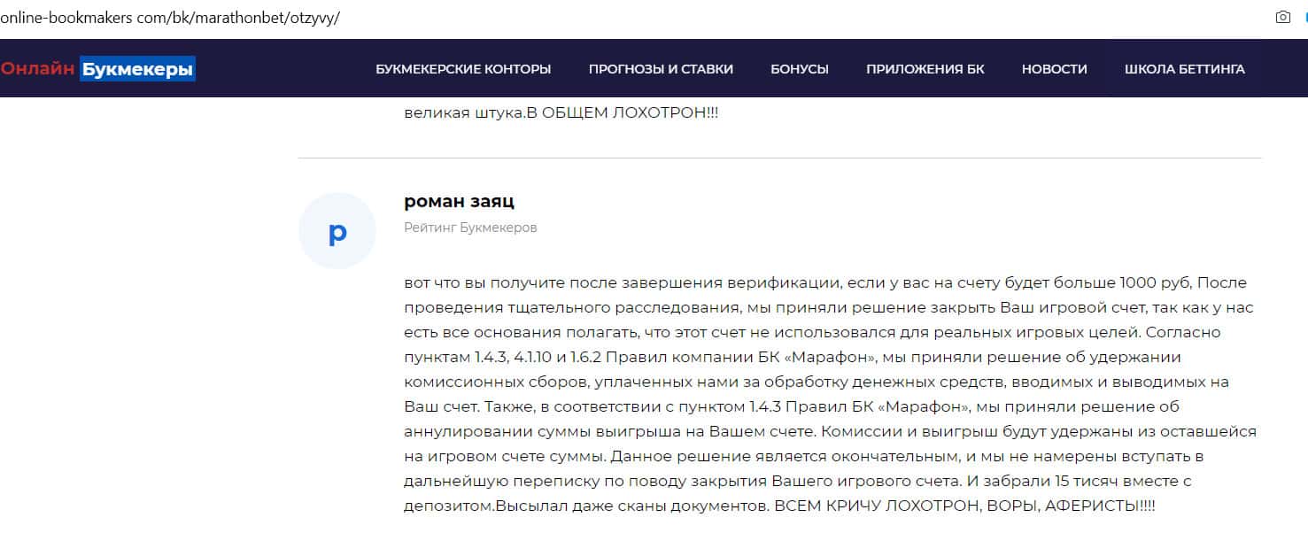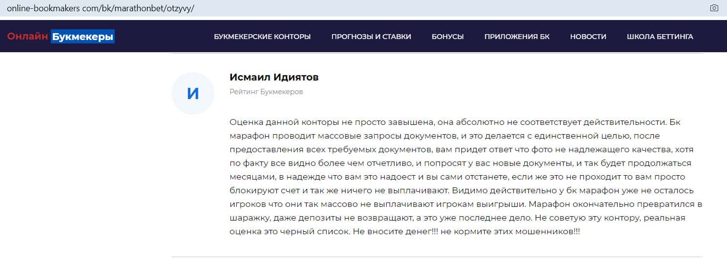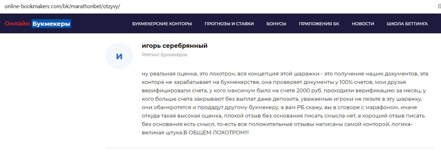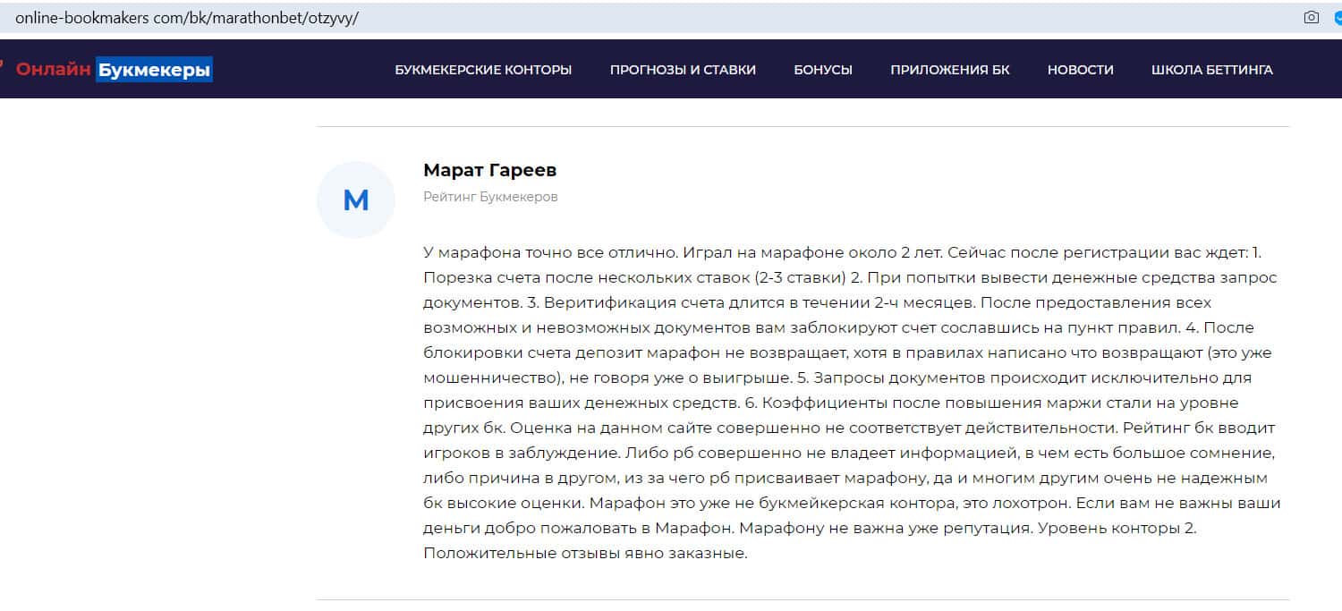 - Отзыв на сайте online-bookmakers com: более подходящее название для конторы Марафон Бет - лохотрон!