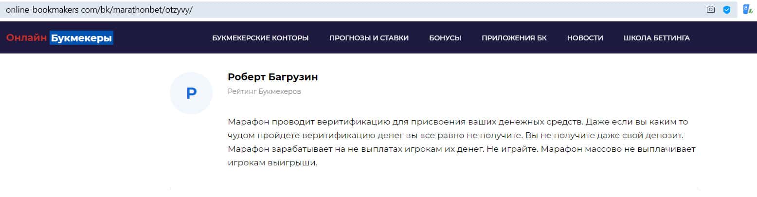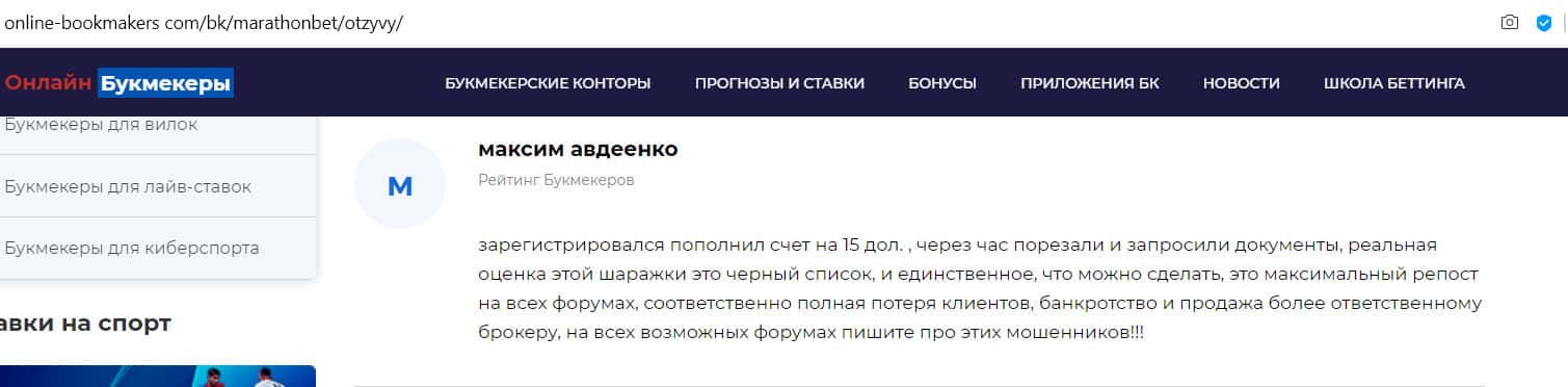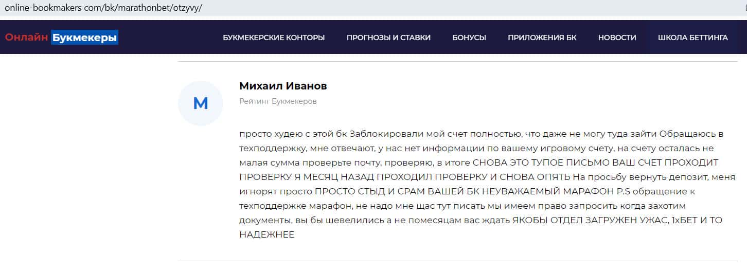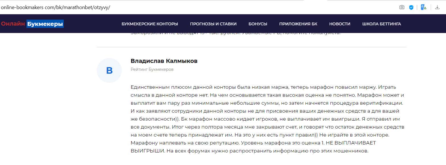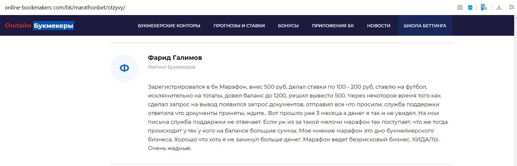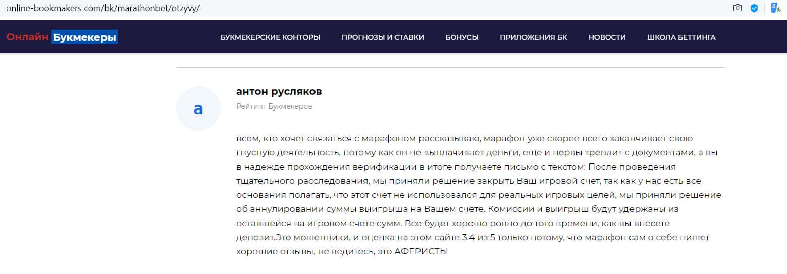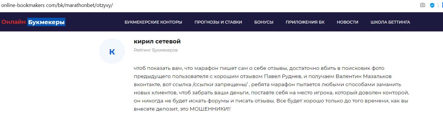 - Отзыв на сайте online-bookmakers com: более подходящее название для конторы Марафон Бет - лохотрон!