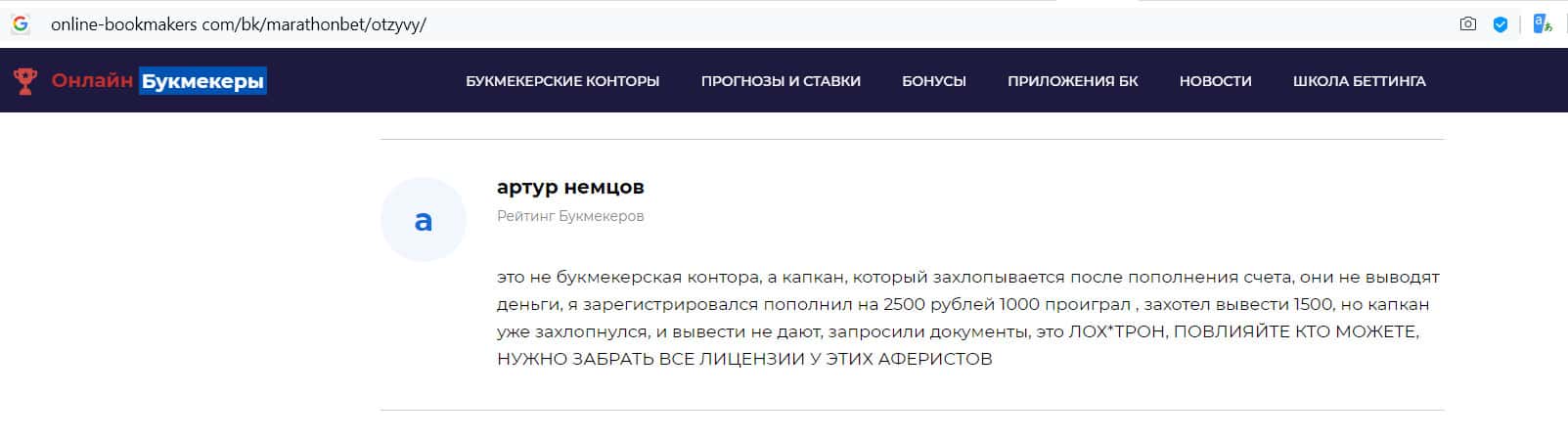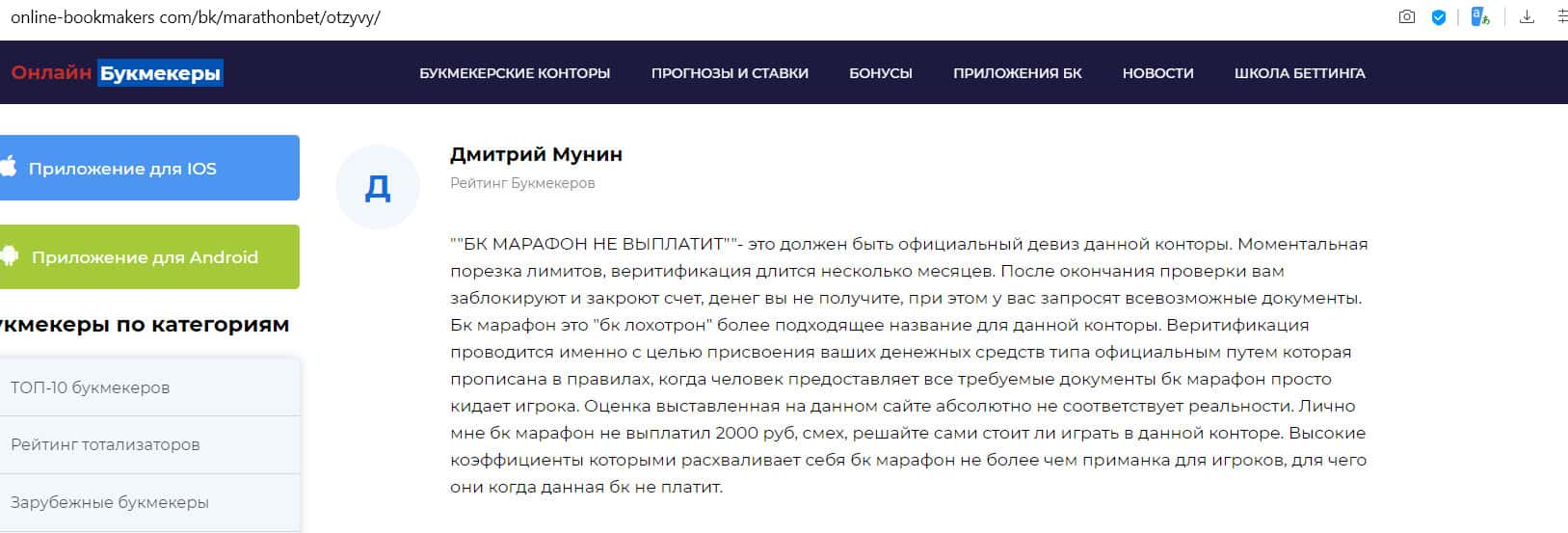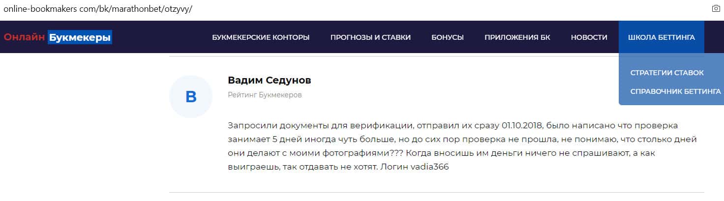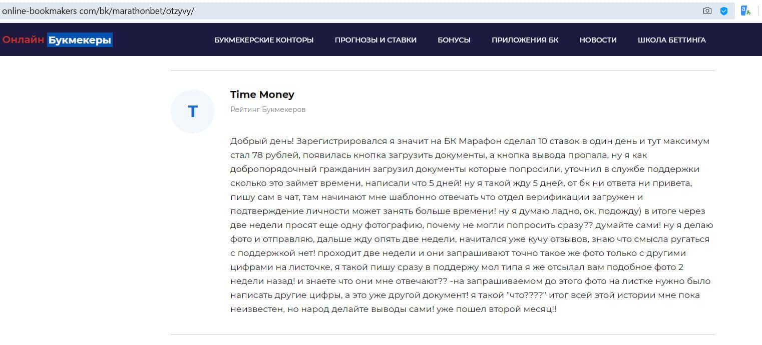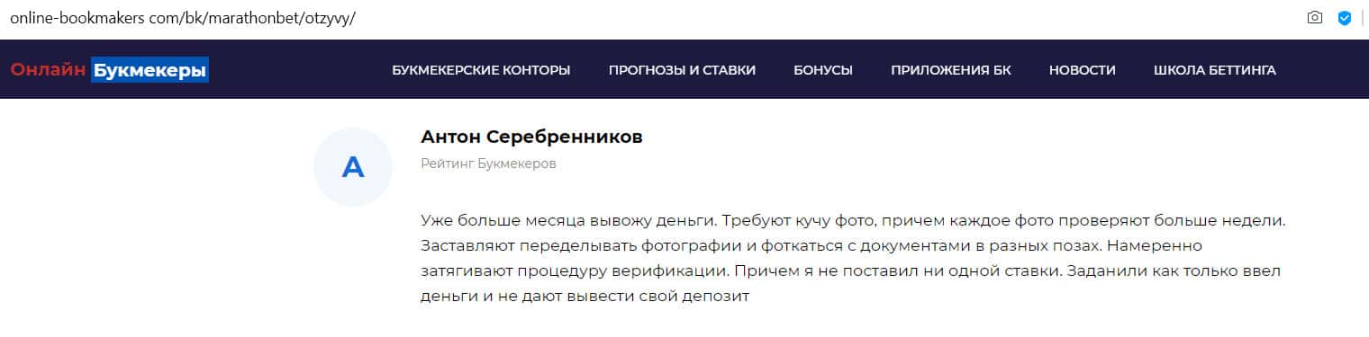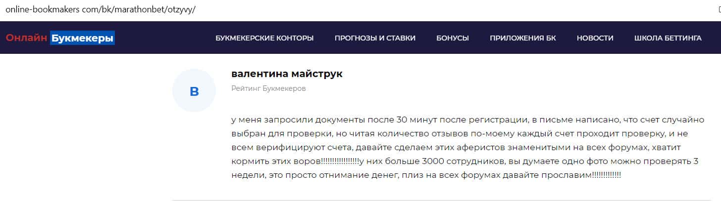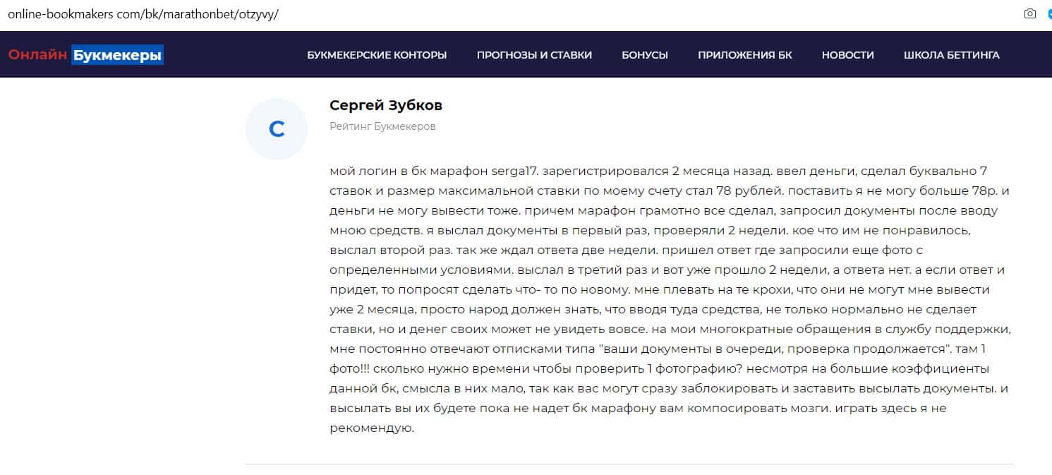 - Отзыв на сайте online-bookmakers com: более подходящее название для конторы Марафон Бет - лохотрон!
