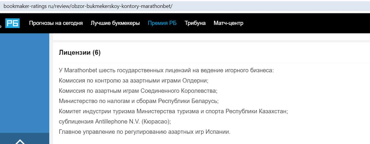 - Имеется ли у букмекера MarathonBet лицензия?