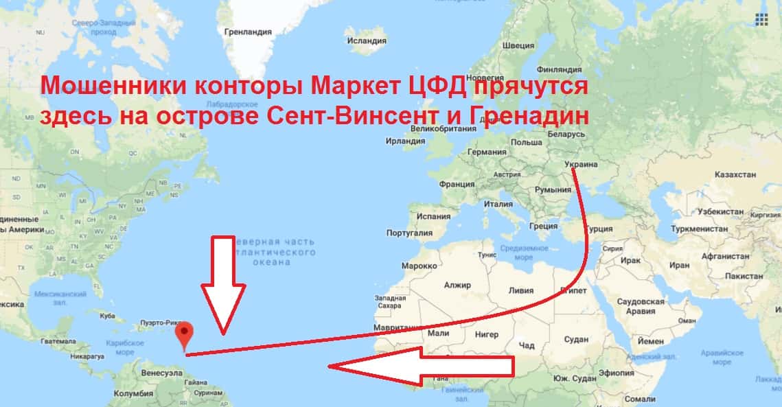 На официальном сайте скам-организации найдена информация о том, что контора Маркет ЦФД имеет оффшорное место регистрации, а именно Гренадинах, расположенном на крупном острове Сент-Винсент. Это не дает им право предоставлять свои брокерские услуги на территории Российской Федерации.