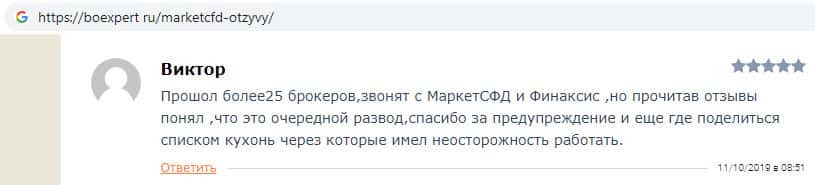 Отзыв некого Виктора о скам-брокере MarketCFD найден на веб-сайте boexpert ru