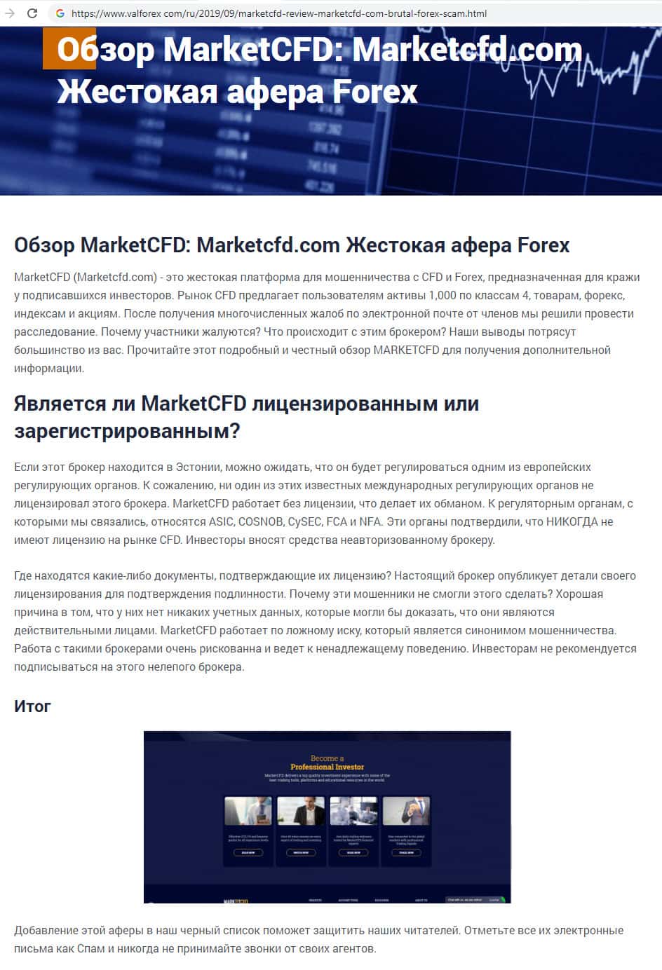 Статья-обзор о мошеннической организации Маркет ЦФД найдена на веб-сайте valforex com