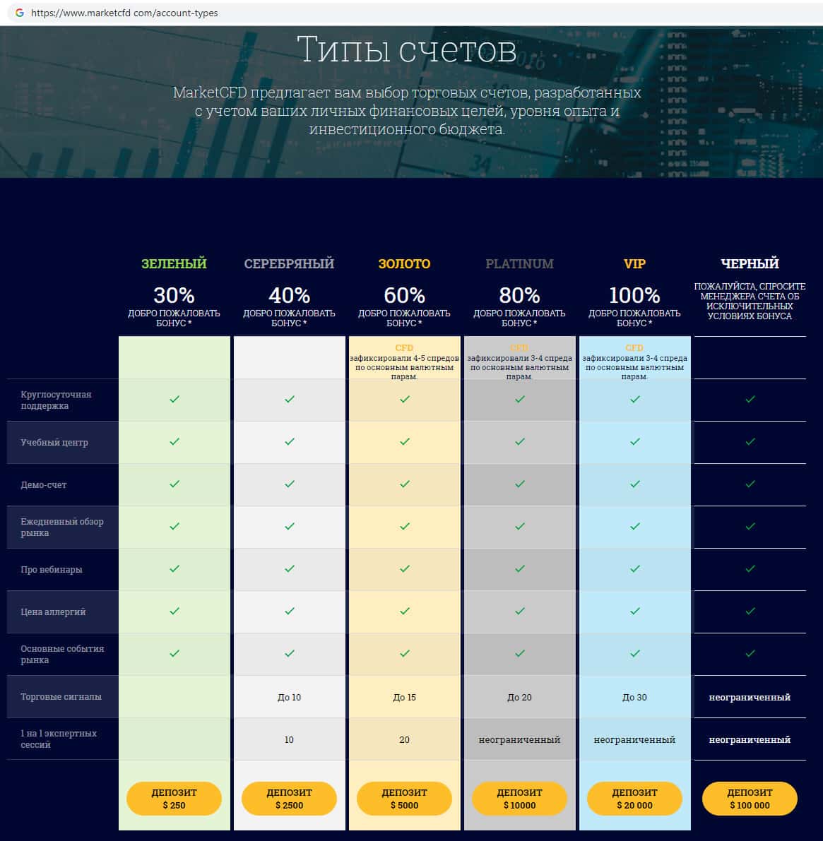 Типы торговых счетов предоставленных на сайте шуллеров MarketCFD