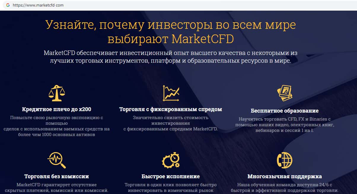 Что рассказывает о себе скам-брокер MarketCFD на своем официальном сайте?