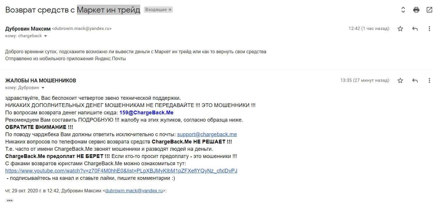 Относительно возможностей вернуть свои деньги назад от ВОРОВ Маркет Ин Трейд - пишите сообщение на мыло: [email protected]