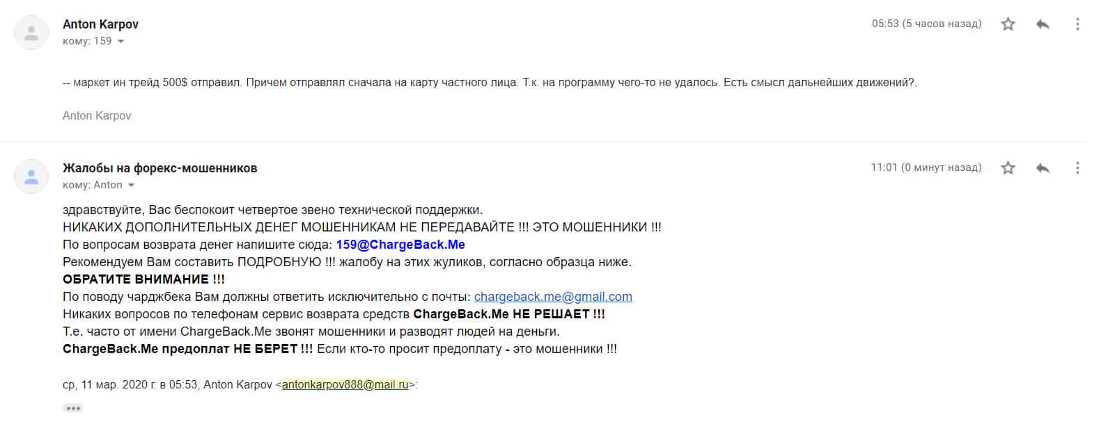 - Мошенники Market-In Trade облапошили клиента на 500$