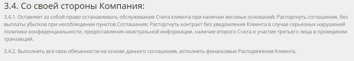 В договоре, который у них называется как Условия и соглашения, шарлатаны используют некоторые моменты касающееся некоторых моментов взаимоотношений компании и клиента. Там сказано, что лохотрон Market-In Trade оставляет за собой право заблокировать счет трейдера без объяснением причин и без права на возврат средств.