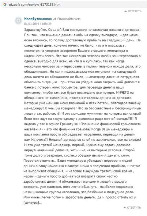 Бессовестные кидалы из F-M-C развели новую клиентку