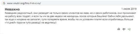 Тем, кто в поисках большой зарплаты выбирает в качестве работодателя контору F-M-C, можно только посочувствовать. Аферюги кидают даже своих сотрудников, если те за 2 недели не приведут новых лохов с тугими кошельками. Как ни крути, мошенники всегда остаются в выгоде.