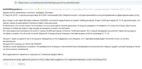- Вопиющий отзыв о мошенниках из Маркет Консалт